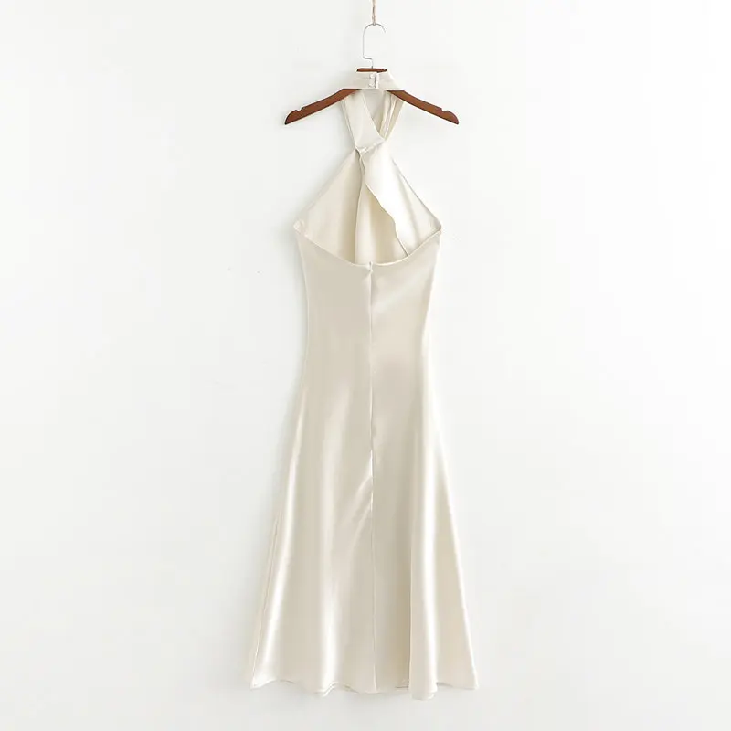 Special Offer 2019 sommer Sexy Seide Halfter Kleid Dame Elegante Party Kleid Backless Ärmelloses Nachtclub Tragen robe longue femme Discount 22% Today!